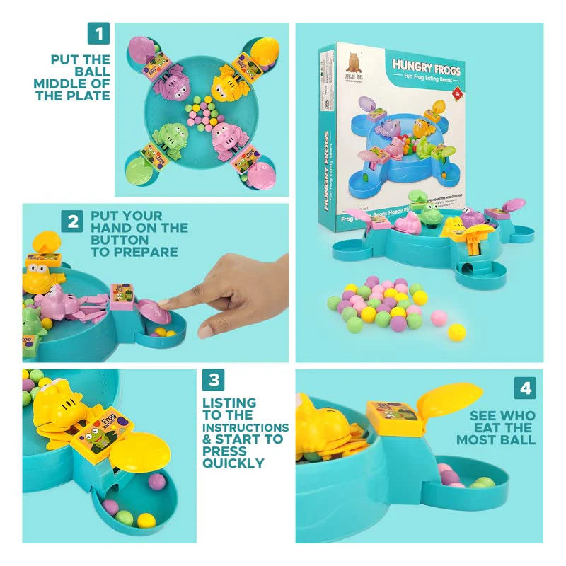 The Hungry Frog Eat Beans Game! Designed for 4 players, this interactive game is perfect for children over 5 years old. Watch as the hungry frog hops around, trying to catch as many beans as possible. Enhance motor skills, coordination, and hand-eye coordination in a fun and entertaining way.